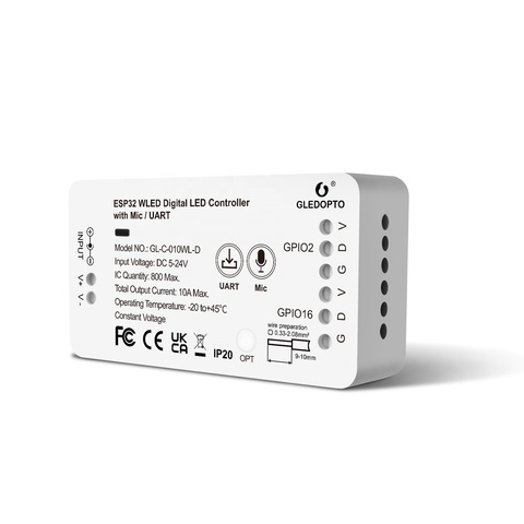 Gledopto ESP32 WLED digitale LED striscia ControllerRGB/RGBW (versione Mic)-controllo App, supporto DIY,Audio reattivo, supporto 800 ICs